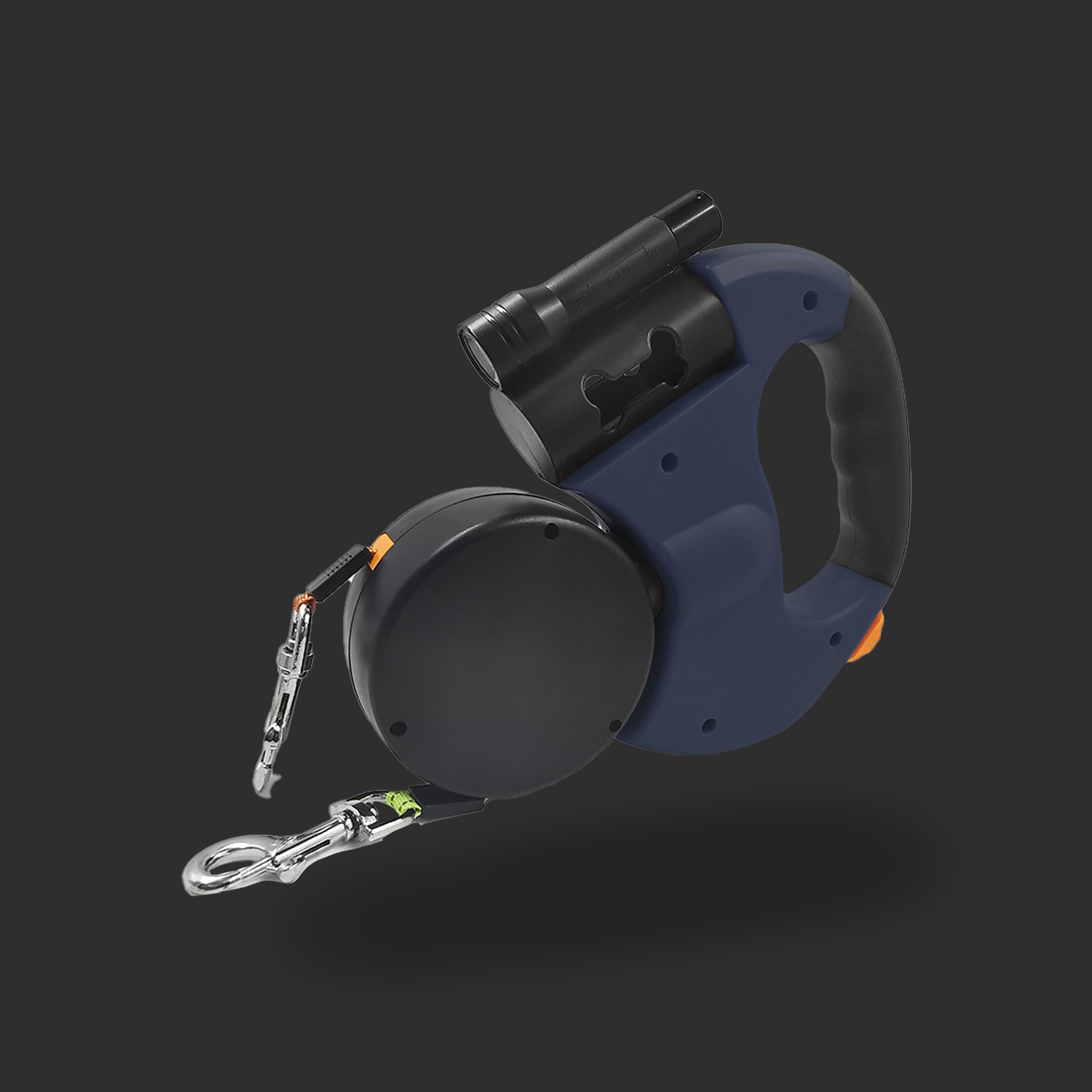 Lesă dublă retractabilă HamFun – pentru doi câini, cu lanternă integrată